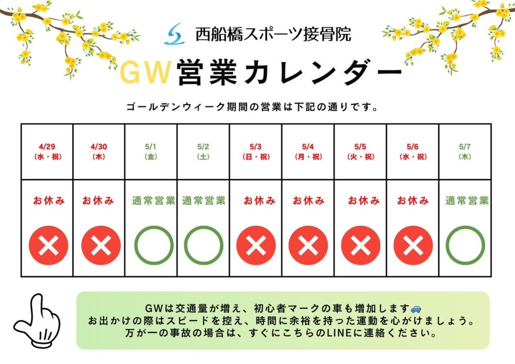 いつも西船橋スポーツ接骨院をご利用いただきありがとうございます。