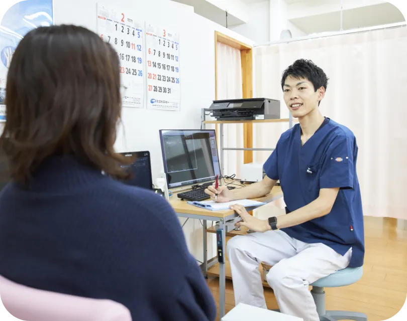 治療後も経過観察を行い、再発防止のためのアフターケアをご提供いたします。患者様の必要に応じて、リハビリやメンテナンス治療も実施。安心して日常生活を送っていただけるよう、最後までサポートいたします。